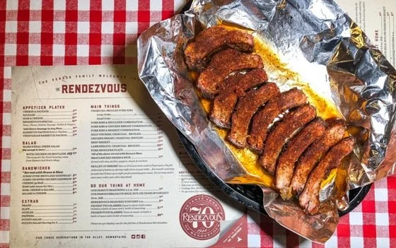 Remove the tray from the oven. Cover to keep warm. In 1968 the building was slated to be replaced by a skyscraper so Vergos moved one block east to another basement location and the Rendezvous has been there ever since.